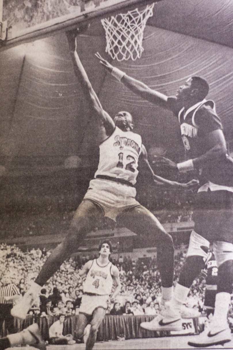 The game kicked off an intense rivalry that spanned three decades, and set the tone for the type of battles Syracuse and Georgetown would play for years to come. The Orange was ranked No. 2. The Hoyas, unranked. But Georgetown came into Manley Field House and upset Syracuse 52-50, ending the Orange’s 57-game home winning streak. Syracuse held a 14-point lead at halftime, but saw it disappear in the second half. Eric “Sleepy” Floyd hit two free throws in the game’s closing seconds to pull off the upset win.