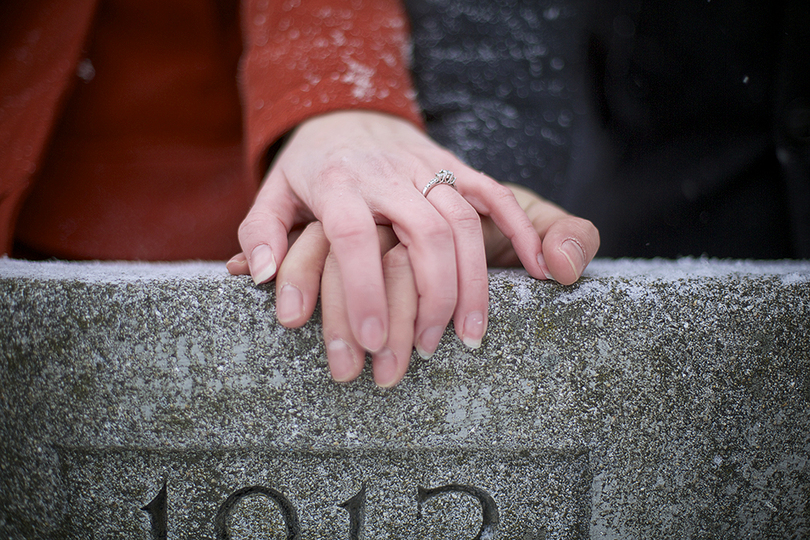 To celebrate their engagement, Julie and Binh sat on the Kissing Bench for the first time last Valentine’s Day. The wedding will have a touch of SU. Julie has two pairs of orange shoes, heels for the ceremony and flats for dancing. The couple will play either the Alma Mater or SU’s fight song during the reception and take a photo with their SU guests.