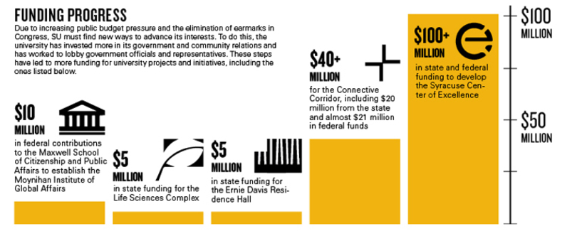 Many of SU’s lobbying efforts fall under the area of education. Twice in 2012, the university contacted New York senators and representatives about the activities and funding needs of Say Yes to Education, according to the Center for Responsive Politics.