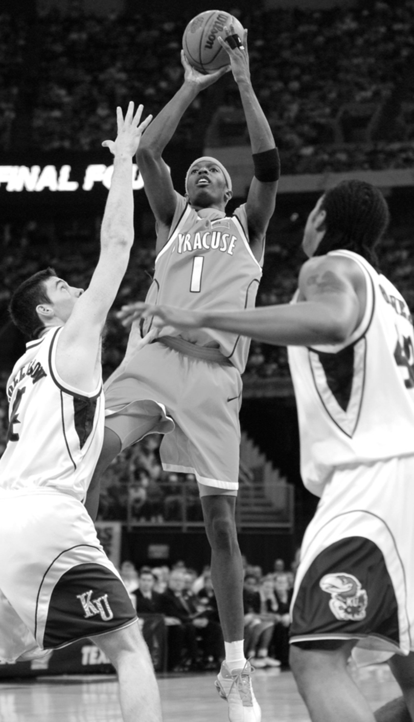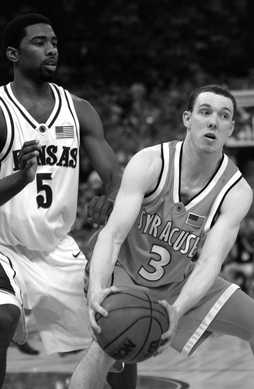 Despite being down 10 with 6:55 remaining, his Jayhawks never quit. They closed the score to 78-73 after a Hinrich dunk with 2:36 left. SU guard Billy Edelin hit a layup for Syracuse, but Hinrich alley-ooped to Collison to keep the Orangemen’s lead at five.