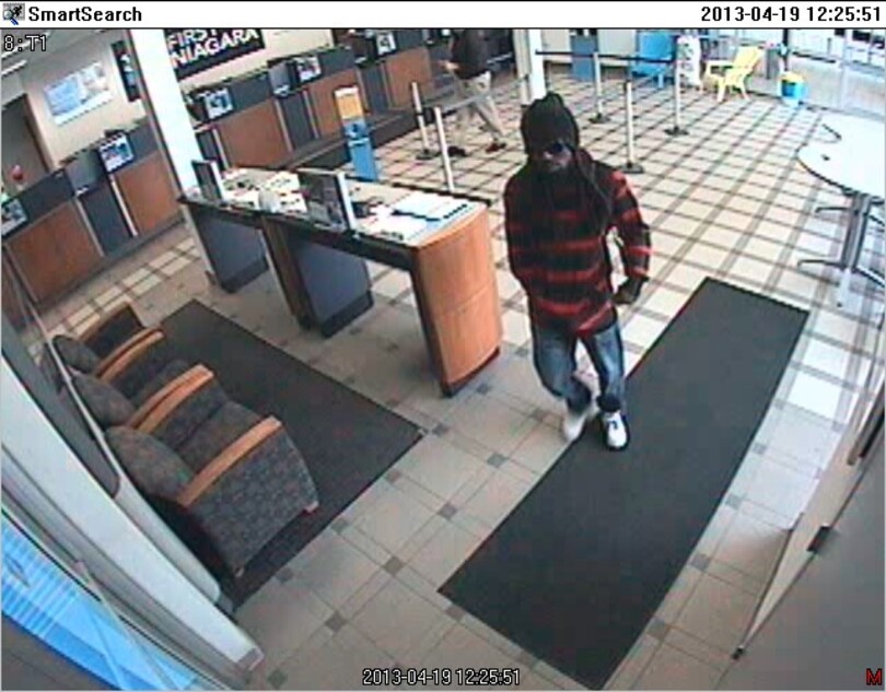 The robbery happened at about 12:20 p.m. at the First Niagara Bank across from Marshall Square Mall, police said, after a man slipped a teller a note demanding money.