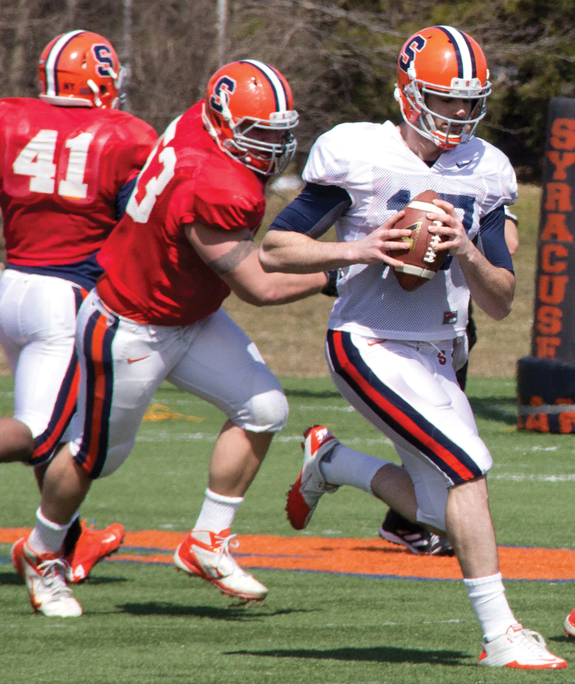 Two weeks into practice, the Orange isn’t any closer to choosing a starter for SU’s opener with Penn State on Aug. 31 in East Rutherford, N.J. As quarterbacks coach Tim Lester said, it is all “a process.”