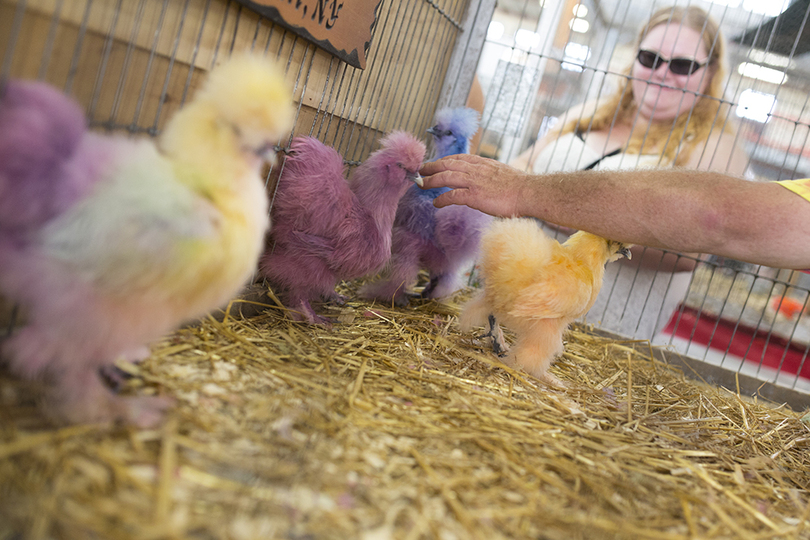 But one of the fair’s main attractions is the poultry section. This year marks 100 years that the fairgrounds has been home to the poultry building, which houses dozens of birds of all kinds, including ducks and chickens. There is even a twice-daily rooster crowing contest at 11 a.m. and 4 p.m.