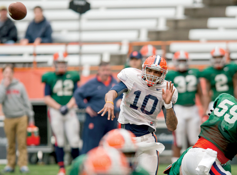 Ryan Nassib ain’t walking through that door. He’s gone, and so is Syracuse’s high-octane, pass-first offense. This year, the offense will be all about the run, and that means the quarterback should not be taking any risks.