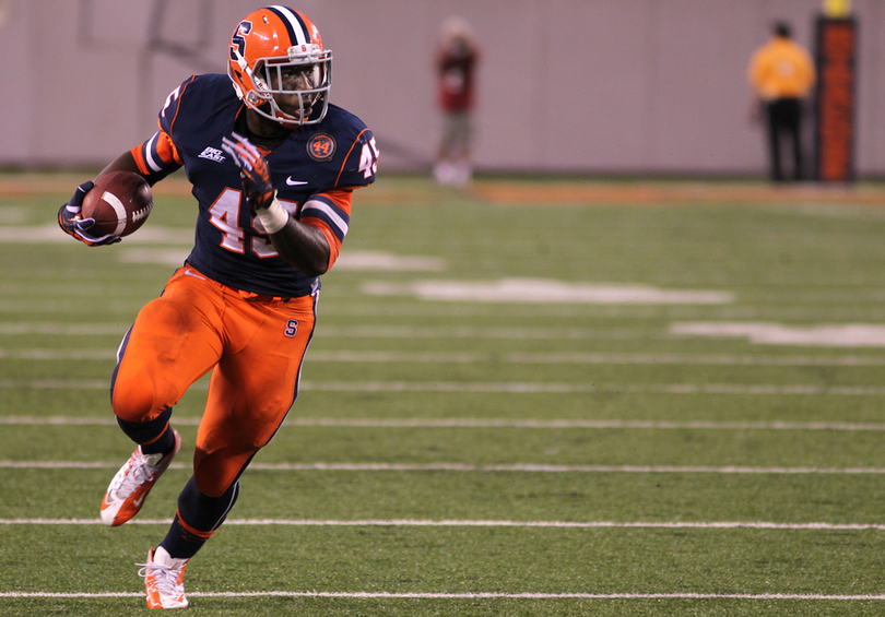 This year’s Syracuse team isn’t going to win by throwing the ball 36 times a game like last year’s team did. But what it does have is a stable of capable running backs so deep that two quality backs have been relegated to kick return duty.