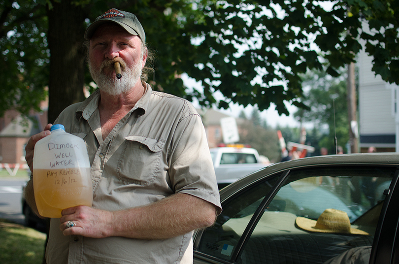 Ray Kemble, a self-described former gas industry worker-turned-whistleblower, travelled from Dimock, Pa., to Syracuse. He carried a gallon of brown water out of his well, which he says has been ruined by hydrofracking.