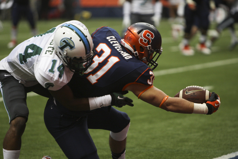 And on Saturday, in Syracuse’s 52-17 shellacking of Tulane, Cleveland lived up to the name. The fullback who hadn’t reeled in a single pass in his three-plus years at Syracuse caught two touchdown passes and almost converted a third.