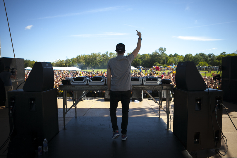 The main stage was the one concertgoers have grown accustomed to seeing at Juice Jam: the behemoth backed by a video screen and sandwiched between two columns of speakers. Dwarfed in its shadow was the indie stage, a venue electronic artist Robert DeLong referred to as “this little trailer thing.”