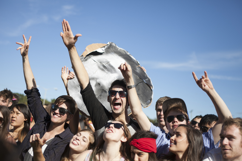 But when Skytop Field opened not long after noon, Juice Jam might still have been a one-stage show. Students sporting overpowering shades of neon congregated at the main stage barrier, and it wasn’t until after University Union concert director Kelly Benini reminded them that indie rockers Smallpools were opening on the indie stage that half the crowd split for the smaller stage.