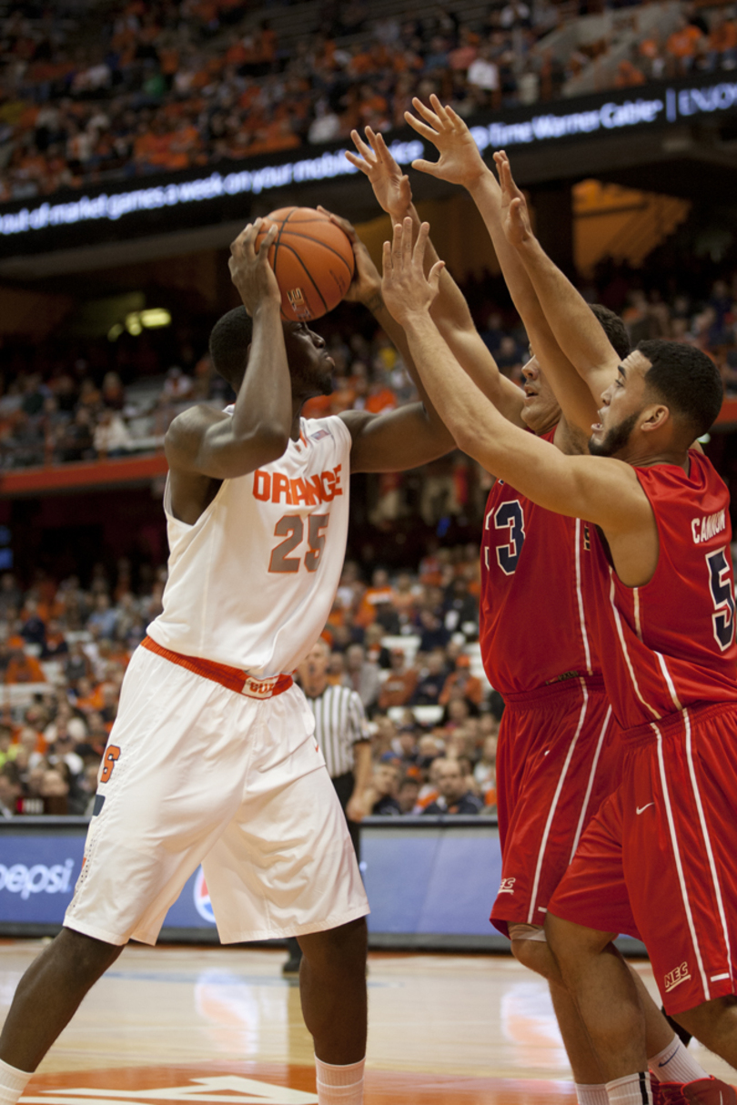 Jim Boeheim spent the majority of the first half during Syracuse’s win against St. Francis (N.Y.) on Monday alternating the focus of his ire between two defensively inept centers — DaJuan Coleman and Rakeem Christmas.