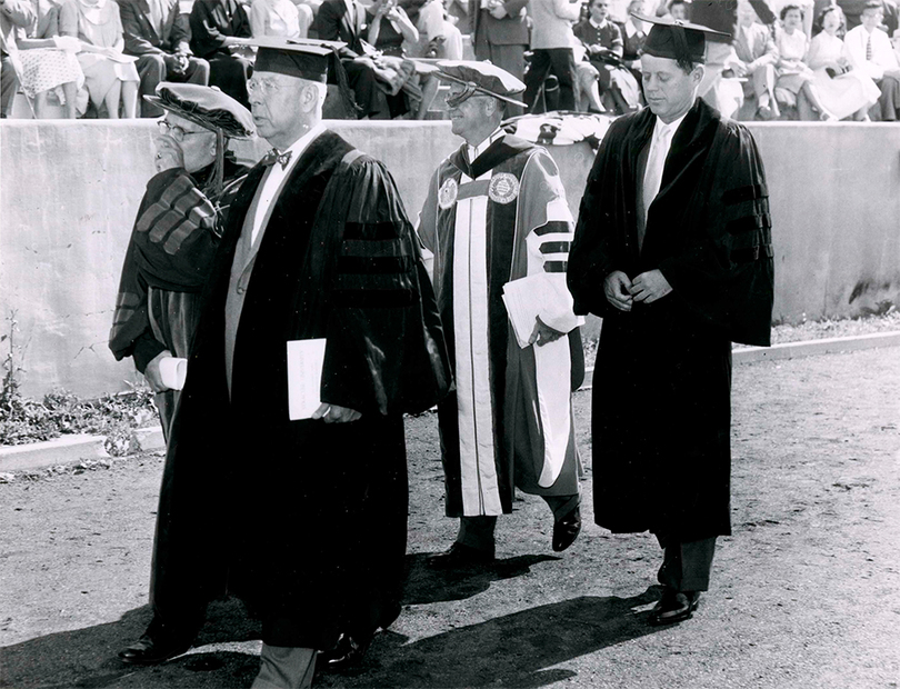 Graduates from the class of 1957 said they remember June 3, 1957, for the excitement of graduation more than for Kennedy’s speech. But they vividly remember Nov. 22, 1963, when the news broke that Kennedy had been shot.