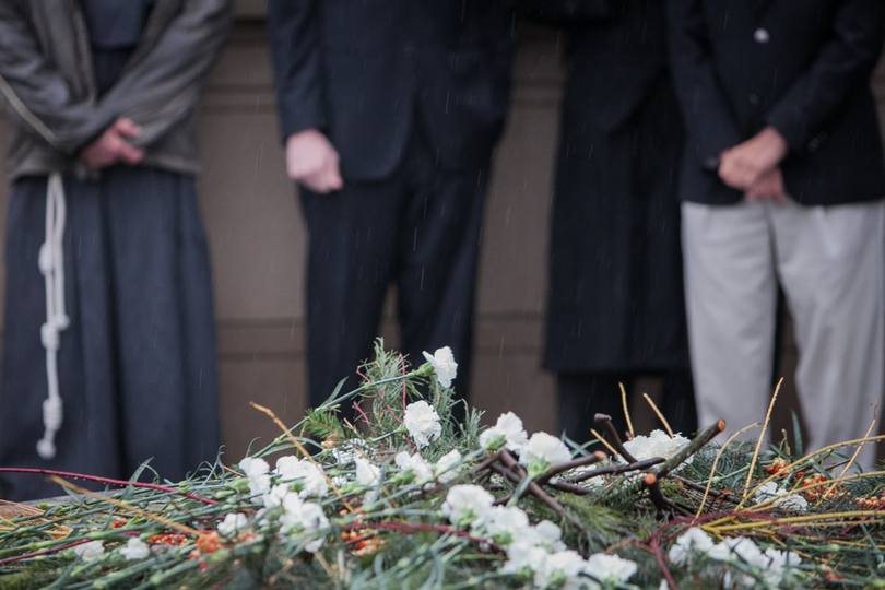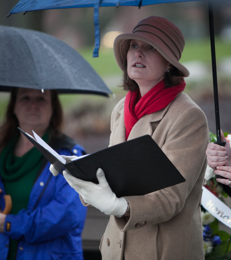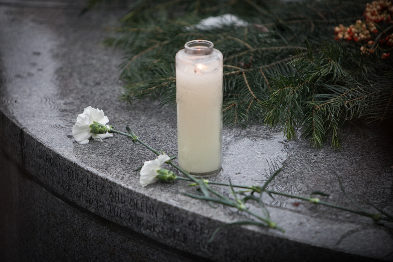The service proceeded to the Place of Remembrance where, under pouring rain, Steinwert described Dec. 21 as the “darkest night of the year,” comparing the fact that it was the winter solstice to it being the anniversary of the tragedy. After the winter solstice, the sun sets later in the day, which means each day has more sunlight – literally and metaphorically “turning the world back toward the light.”