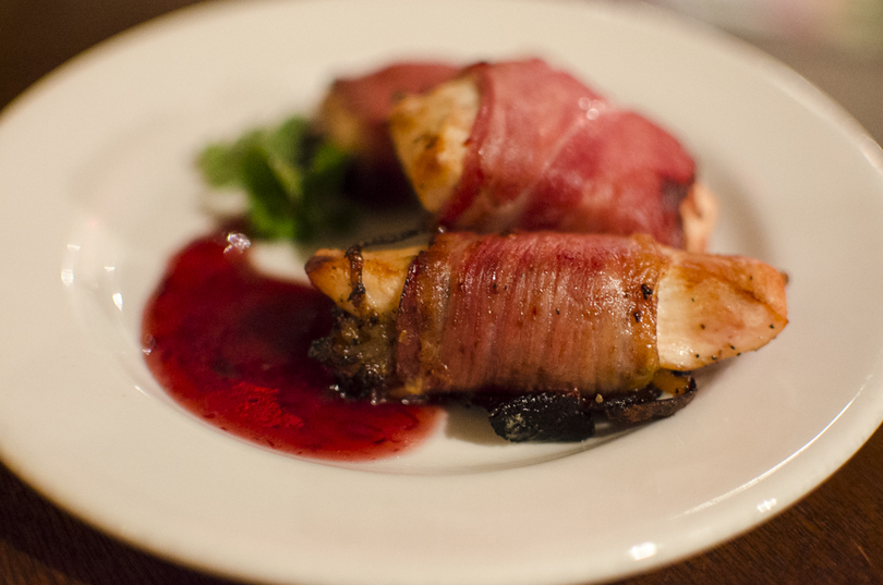 The chicken and prosciutto wasn’t what I expected. On the menu, it said there would be chicken, sliced apples and caramelized onion wrapped in prosciutto and topped with a cranberry gastrique sauce. Instead, I didn’t detect any apples or caramelized onion, and the cranberry sauce was served on the side.