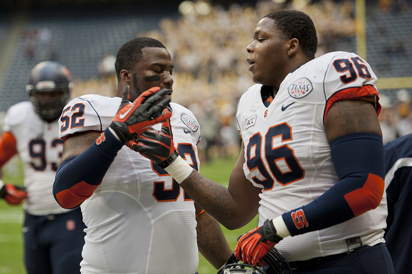 Former Syracuse linebacker Marquis Spruill and defensive tackle Jay Bromley will suit up for the first time since the Orange’s 21-17 Texas Bowl victory on Dec. 27.