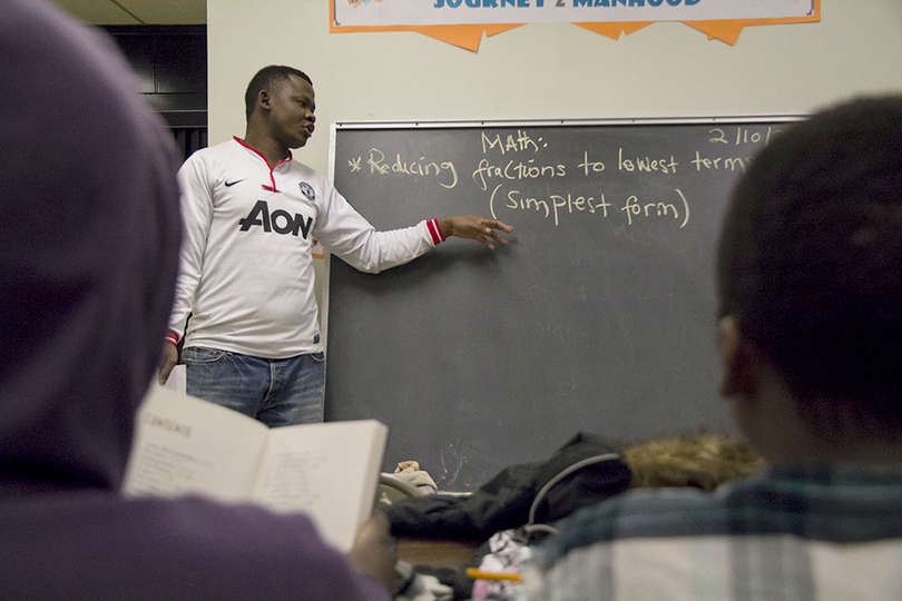 At the front of the room stands Osman Ramadhani. He’s in the classroom Monday through Friday from around 4 p.m. until as late as 8:30 p.m.