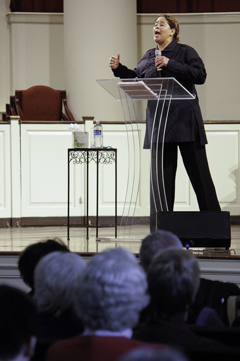 Smith was able to make the audience not only laugh, but also cry in a matter of minutes with her personal snapshot of her Aunt Lorraine. In the monologue called “Gloves,” she acted as her aunt reminiscing about putting her hands in her mother’s arms after school during the Great Depression. Their family of eight couldn’t afford gloves and their mother would greet them with her open arms to warm them up in the cold.