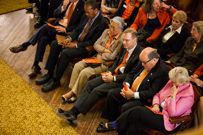 In addition to the panelists, the nearly-full auditorium saw attendees including Syverud’s wife, Ruth Chen, Chairman of the SU Board of Trustees Richard Thompson, dean of the S.I. Newhouse School of Public Communications Lorraine Branham, Vice Chancellor and Provost Eric Spina and many other members of the SU community.