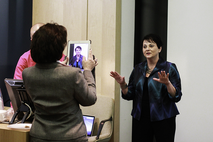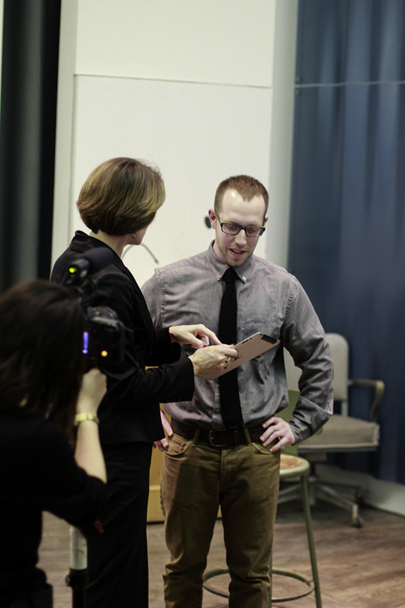 The 15 hand-selected speakers rotated practicing their speeches into iPads and cameras, facing themselves, getting ready to address spectators in Newhouse’s Joyce Hergenhan Auditorium on Wednesday.