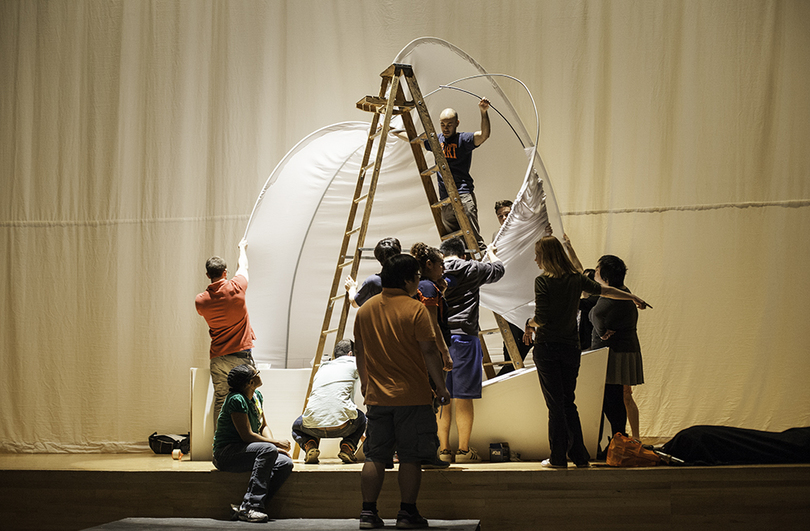 We are very excited this year because we have collaborated with the architecture program to use an installation they have created as the backdrop for the show that the models walk through,said Nguyen Long Nam To, an assistant professor in the department of design in VPA.