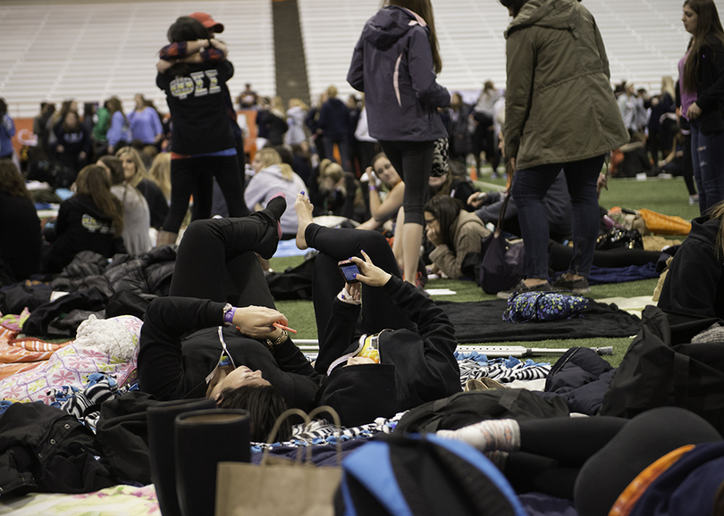 Nearly 2,000 Syracuse University and State University of New York College of Environmental Science and Forestry students participated in the event from Friday at 6 p.m. to 6 a.m. Saturday. Students from various campus organizations formed groups, and then took turns throughout the night walking the track in the Carrier Dome.