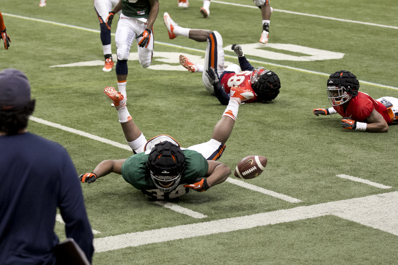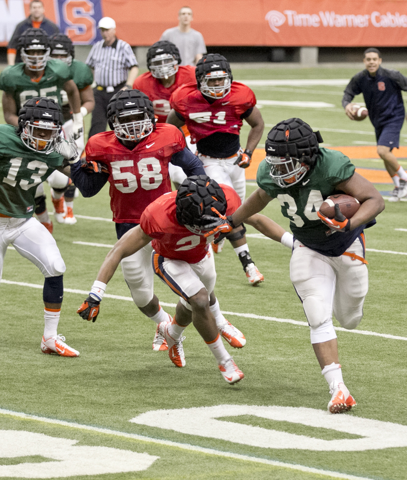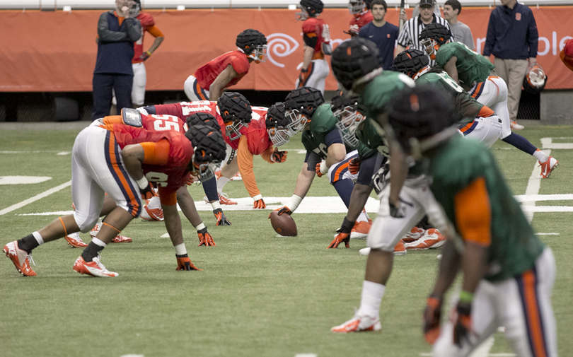 SU head coach Scott Shafer said the scrimmage started off with the defense dominating, recording a string of tackles for loss, but that quickly changed.