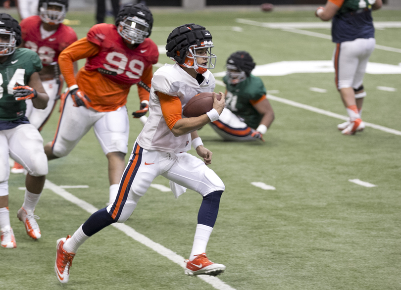 That was one of Syracuse’s five touchdowns on the day in the team’s first open spring practice Tuesday. The Orange offense showed off its new fast-paced look in the Carrier Dome, consistently torching a banged-up defense.