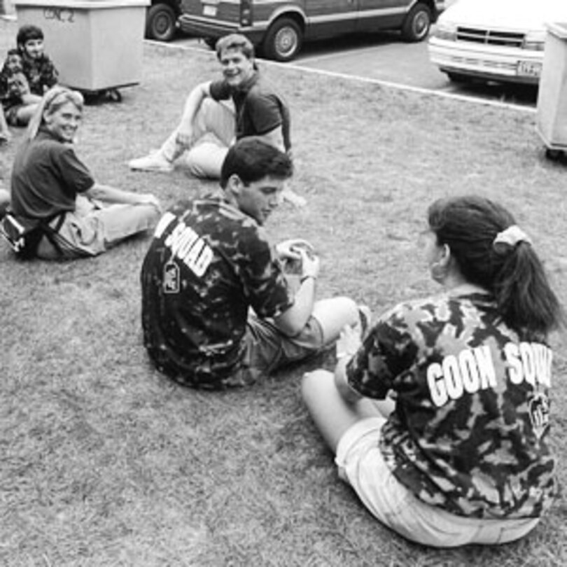 Carrie Abbott, director of the Office of First-Year & Transfer Programs, said the tradition of the Goon Squad started because its members would enforce the rule requiring new students to wear beanies to indicate their freshmen status. In the late 1950s, the group began helping students move in to their dorms and the tradition has continued since.