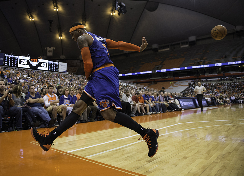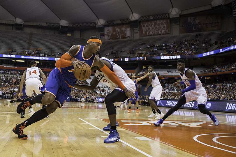 Carmelo Anthony returns to Carrier Dome hardwood in NBA exhibition as Michael Carter-Williams and Jerami Grant watch from sideline