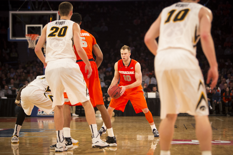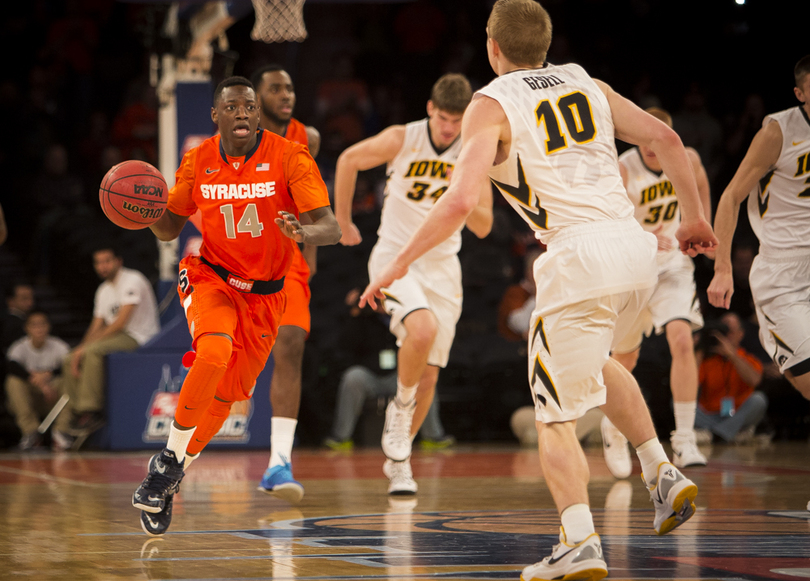 On Thursday night, the Orange (3-1) had to play in spite of its guards. And while bad passes and clanked open 3s persisted in a 66-63 win over Iowa (2-2) in Friday’s 2K Classic consolation game on Friday, Joseph and junior shooting guard Trevor Cooney’s improved play put its big men on the scoreboard, kept Rakeem Christmas out of trouble and — just barely — kept SU ahead of the Hawkeyes.