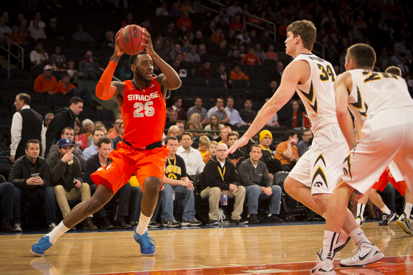 While the No. 23 Orange’s (3-1) woes from outside persisted, its efficiency down low carried it to a 66-63 victory over Iowa (2-2) in the 2K Classic consolation game at Madison Square Garden. Christmas, a night after fouling out with just eight points, went for 18 points and freshman forward Chris McCullough finished with 20 points, 10 rebounds and three blocks.