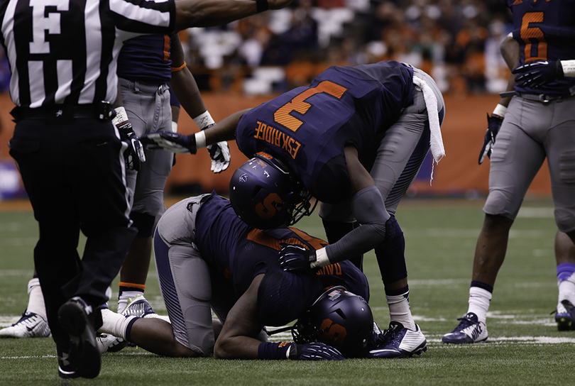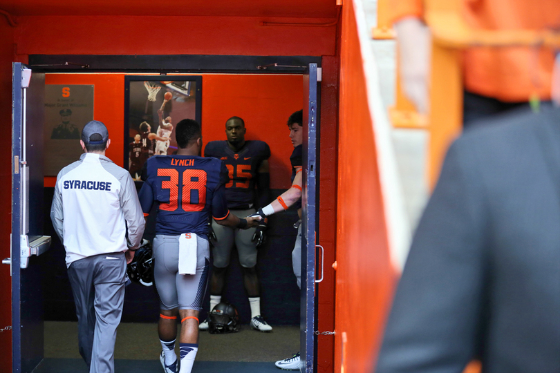 Earlier in the day, the Syracuse linebacker played in the Carrier Dome for the last time. No. 38 stood with his parents during a pregame ceremony for him and his 28 classmates — fittingly at the 38-yard line. It was the beginning of the end of the team captain’s college career.