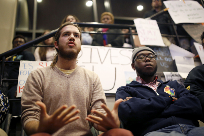 “This meeting doesn’t mean we’re leaving,” said Colton Jones, one of the leaders of the protest.