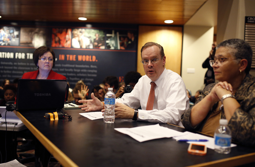 “It was nice to have the chancellor here, but we all have the understanding that all this isn’t resolved in a day and all this isn’t resolved in an hour-long meeting,” Jones said in an interview after the meeting. “I think it was good that he showed his face and he acknowledged some of the things that are going on but we know that this is far from over.”