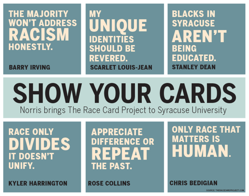 Norris, a special correspondent for National Public Radio, created The Race Card Project, in which people are invited to submit six-word sentences or phrases that express how they feel about race and cultural identity on the project’s website. On Sunday, Norris will serve as the keynote speaker for the Martin Luther King, Jr. Celebration in the Carrier Dome. Norris said the project fosters conversations about race and cultural identity in America.