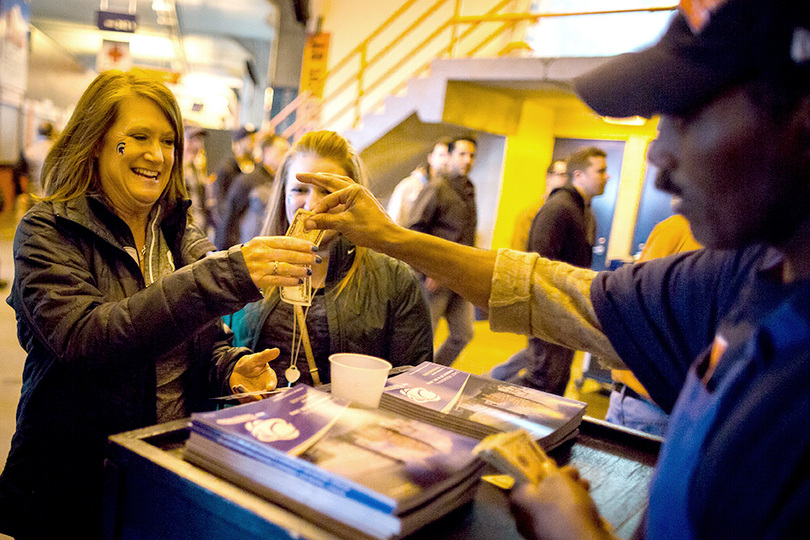 “Get tonight’s program! The souvenir program!” Joe Godley, 64, bellows down the promenade of the Carrier Dome.