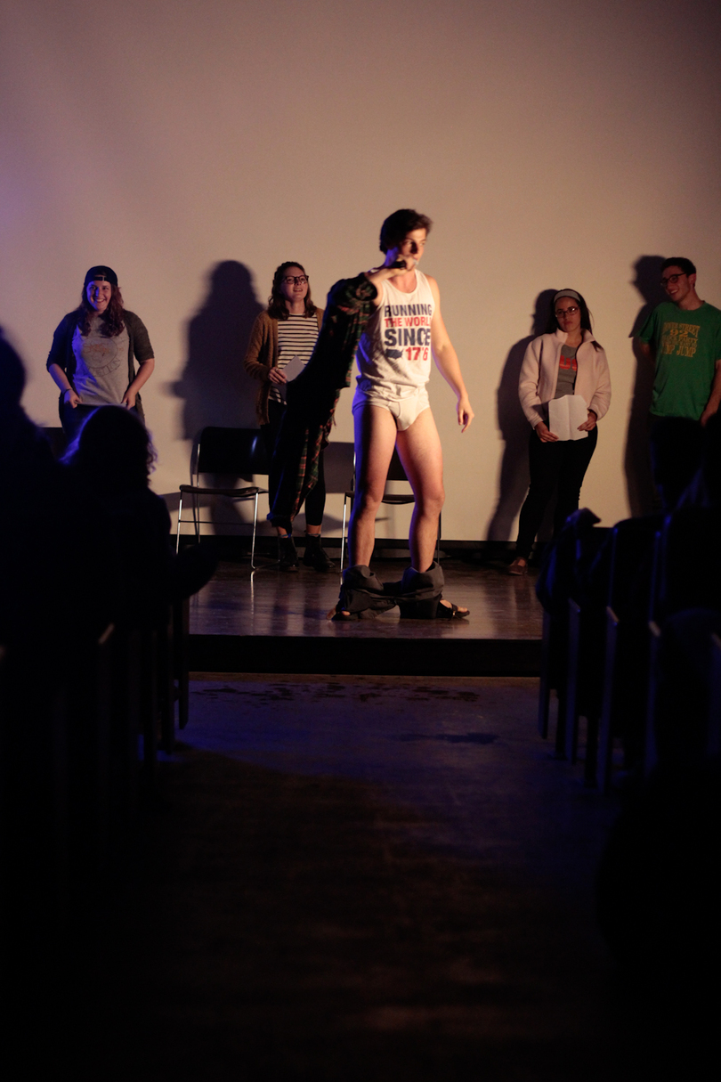 Campus stand-up groups Zamboni Revolution and The Kumquat took the stage without a rehearsed set, asking the audience for words to inspire their stand-up acts. A member of The Kumquat even stripped down to a pair of underpants and his wife beater, warranting mixed reviews from audience members.
