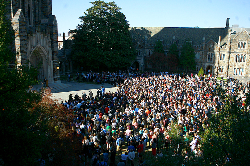 Students, faculty at Duke University gather together after noose hanging incident