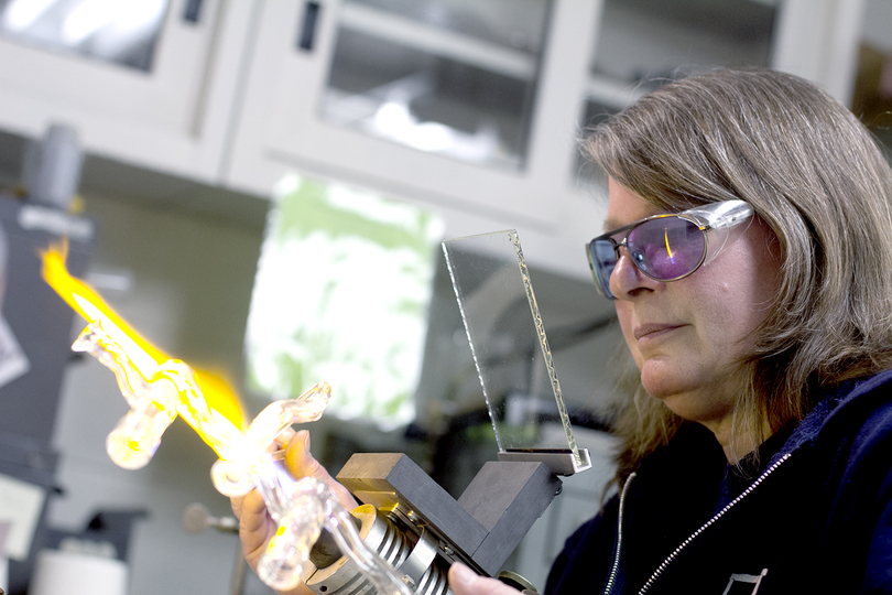 Syracuse University’s glassblower Sally Prasch works with science departments for 10 years