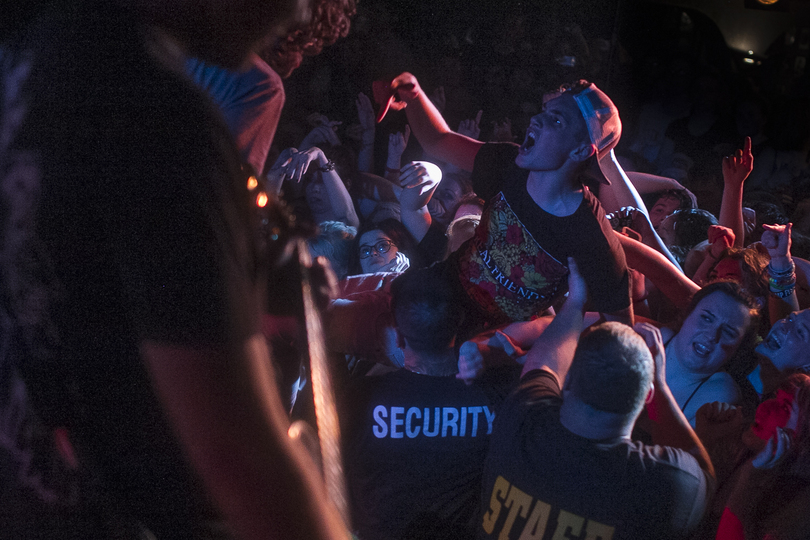 The following two bands, the Knuckle Puck and Real Friends, had more of a punk sound that energized the crowd even more. During the two sets, security staff members had to be stationed near the front of the stage, ready to catch people who were lifted up and crowd surfed to the front of the stage. It seemed as if every few seconds during both band’s sets, someone was being lifted up and carried around.