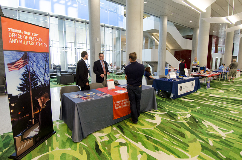 Representatives from other organizations such as Syracuse Vet Center, Soldier On, Red Cross, Salvation Army and SU’s Institute for Veterans and Military Families set up tables with information about their missions in Dineen Hall’s main lobby. VISION networks with these organizations based in the greater Syracuse area at the Central New York Veterans Expo at the New York State Fairgrounds, Crouch said.