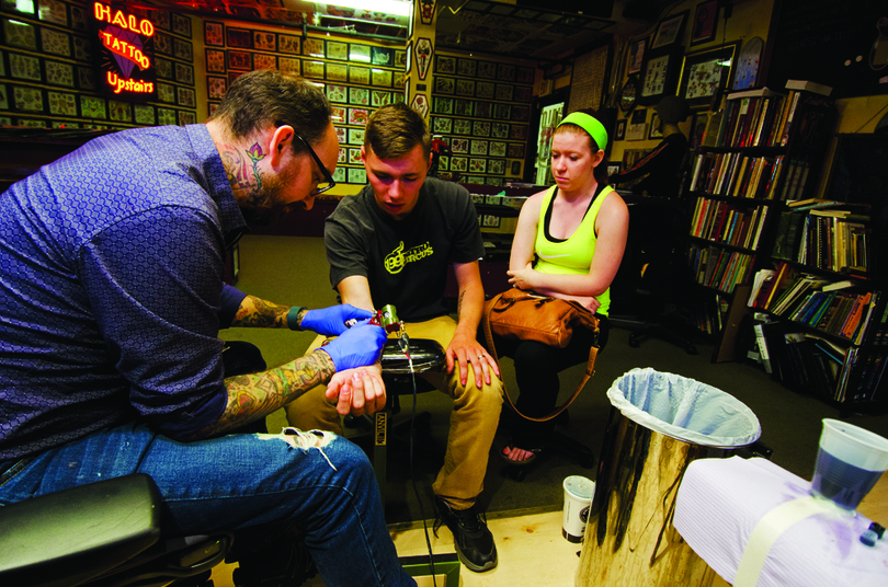 The artists at Halo Tattoo on Marshall Street use single-use disposable needles and disposable “ink caps.” The artists also all receive blood-borne pathogen training from the Red Cross, said D.J. Rose, co-owner and tattoo artist of the shop.