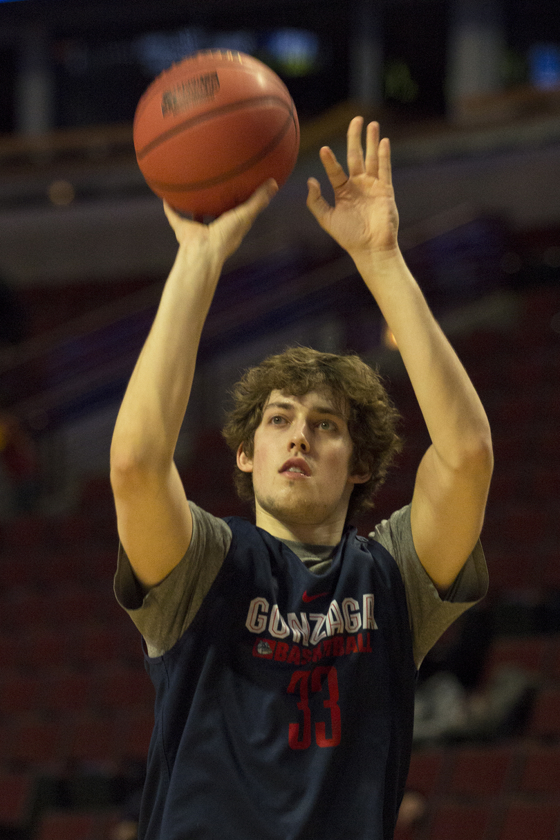 During the beginning of Gonzaga’s open practice, Wiltjer and Sabonis both canned 3s from the top of the key. Then Sabonis showed off his array of post moves and ability to hit from midrange while Wiltjer continued to knock down shots from behind the arc, this time from the corner.