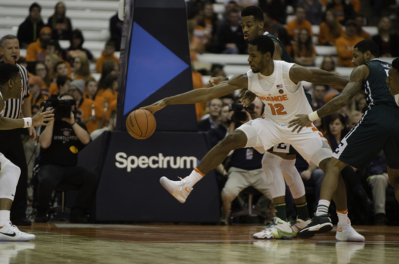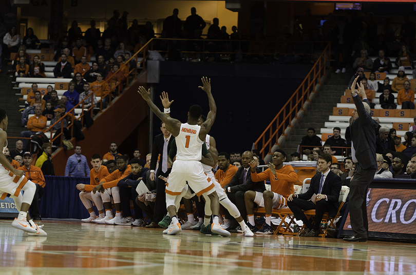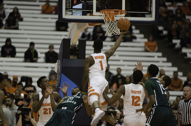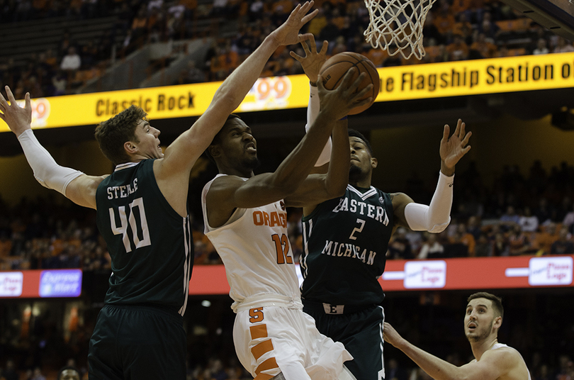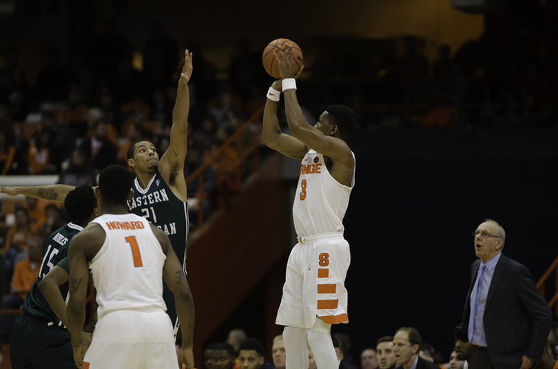 Syracuse (7-4) drubbed Eastern Michigan (6-5), 105-57, on Monday night in the Carrier Dome to get back in the win column after losing to Georgetown on Saturday afternoon. John Gillon and Frank Howard provided a spark for Jim Boeheim after the head coach said he wasn’t getting enough from his players on Saturday. Tyler Roberson also got back into the mix and Andrew White looked like he started figuring out his shot selection. See our best shots from the game above.