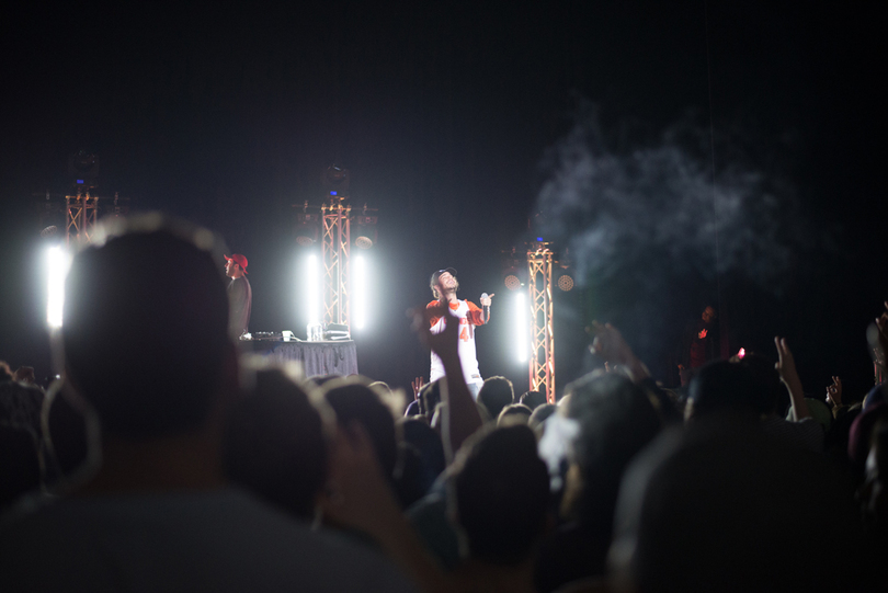 Russ’s stage presence was something worth noting, too. Most of the time, he was at the edge of the stage dancing, and his hand gestures as he rapped were almost to the point of excessive. In between verses, though, when he was allowed to take a break, he backed up and held out his arms to the side and stared at the crowd in front of him, reaching what appeared to be silent transcendence. While the crowd was mostly losing it, singing along to the chorus that was playing, Russ took it all in. Watching him made this feeling contagious, and you can’t help but admire the obvious passion he has for what he does.