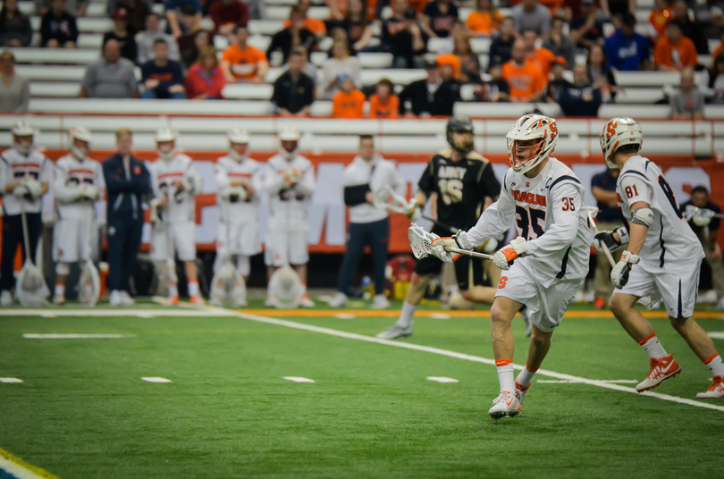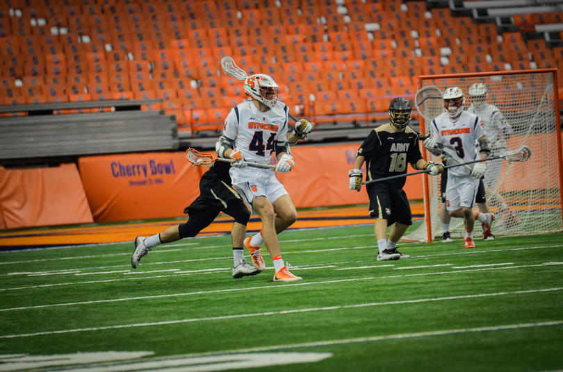 A Ben Williams-less No. 6 Syracuse team didn’t have enough answers. Every time the Orange (2-1) pulled within one or two, its inexperience and injuries resurfaced as Army (3-1) reeled off a bounce-back run. The Black Knights pulled away with a last-second victory behind David Symmes’ game-winner on Saturday afternoon inside the Carrier Dome. Here are the best shots from the game.