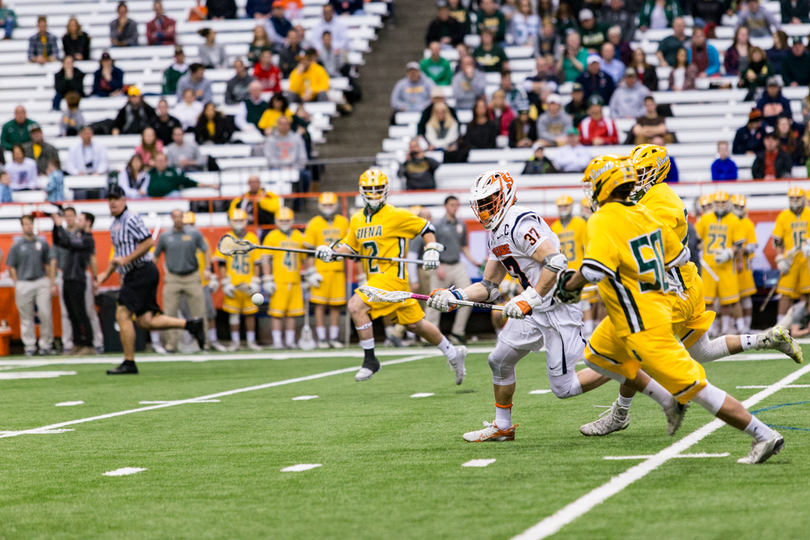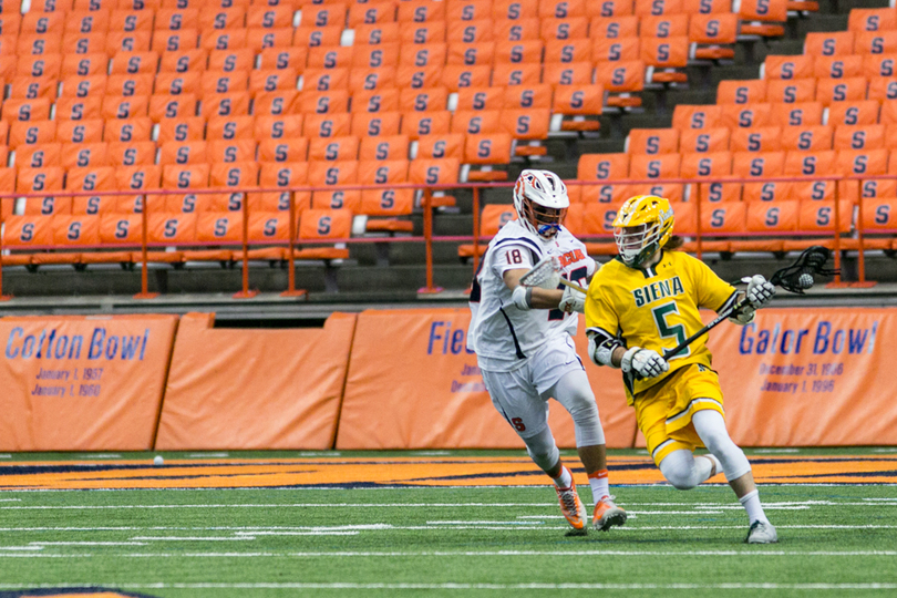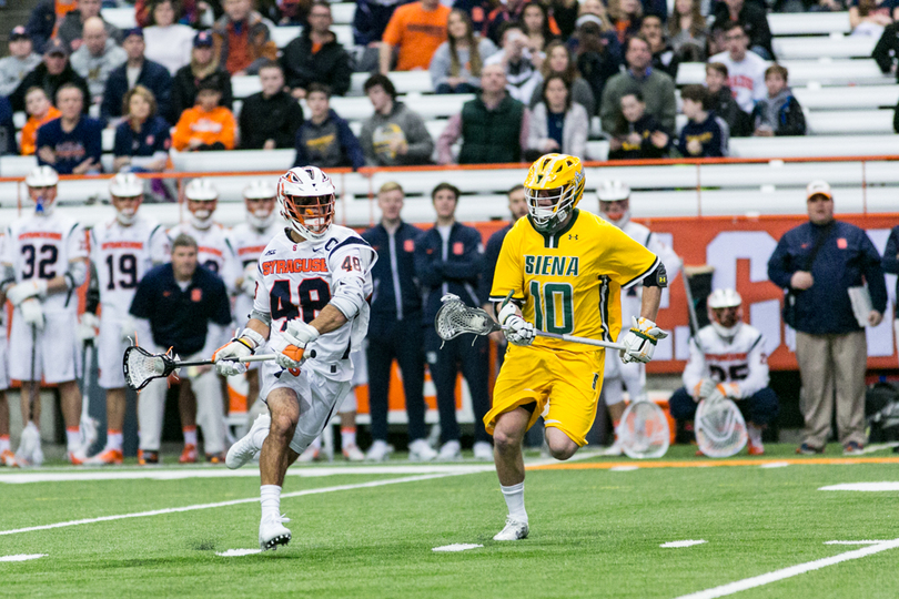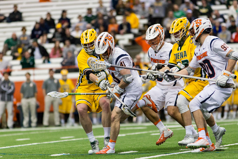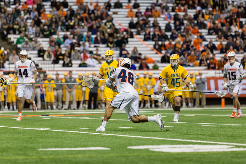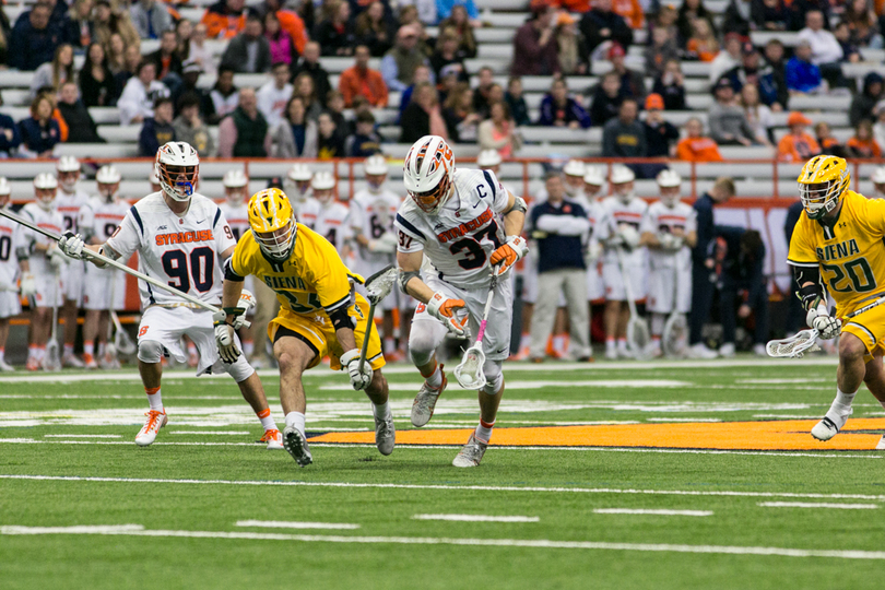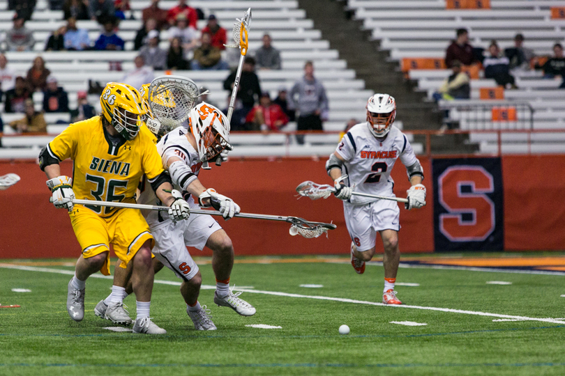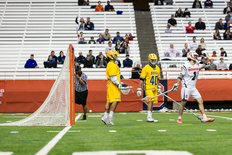 No. 6 Syracuse (1-0) blew out Siena (0-1) 19-6 Saturday afternoon in the Carrier Dome. Nate Solomon and Brendan Bomberry scored four goals each, and Jordan Evans, Nick Mariana and Stephen Rehfuss added three apiece as SU coasted to the win.