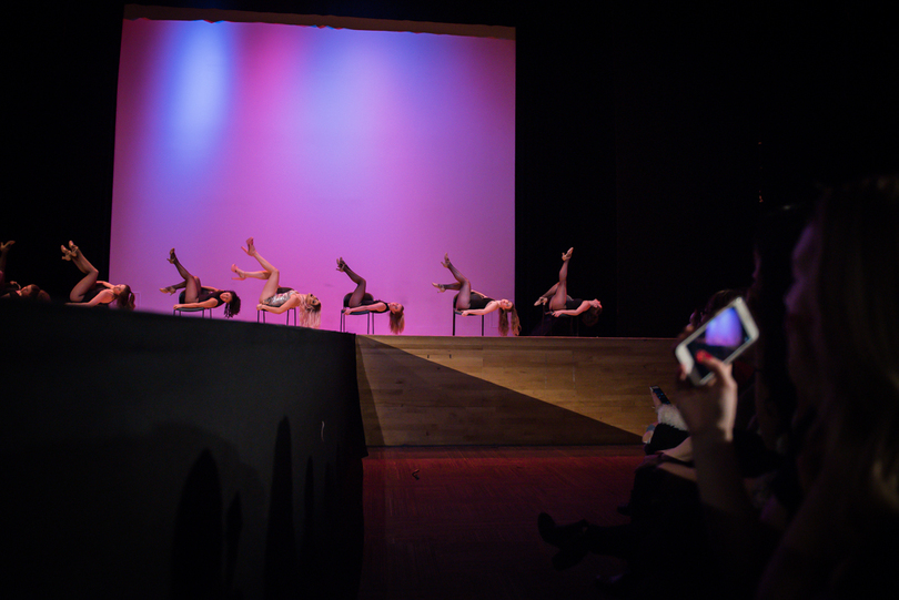 Following the intermission, last year’s winner Courtney McGuire took the stage. She pranced around the stage with six backup dancers and a roaring fan section sitting just offstage. She twirled pink feather fans while clad in a silver, glittery costume.