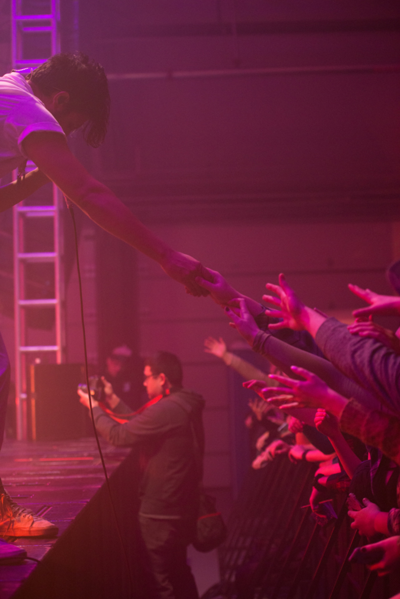 Young the Giant frontman Sameer Gadhia pushed the boundaries of his stage all night. Every now and then he would reach out and have a fan or two grab his hand. His vicious stare often locked eyes with crowd members who knew his lyrics just as well as he did. But not until the last song did Gadhia’s interaction with the audience reach a level Young the Giant superfans Kelly Sisson and Matt Siau could have only dreamed of.