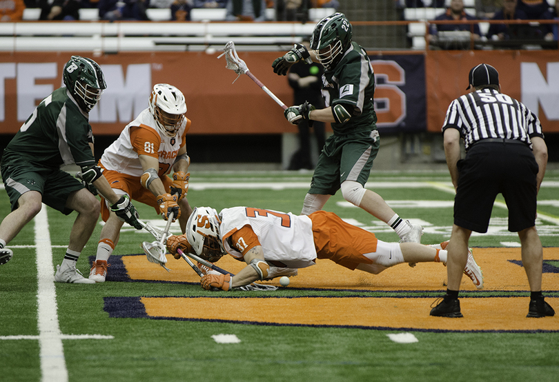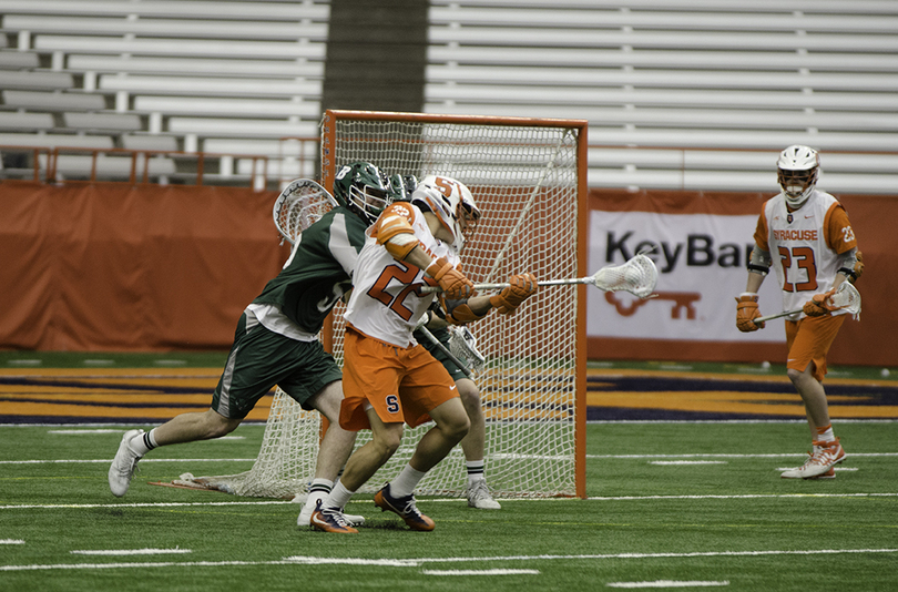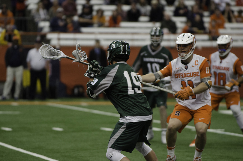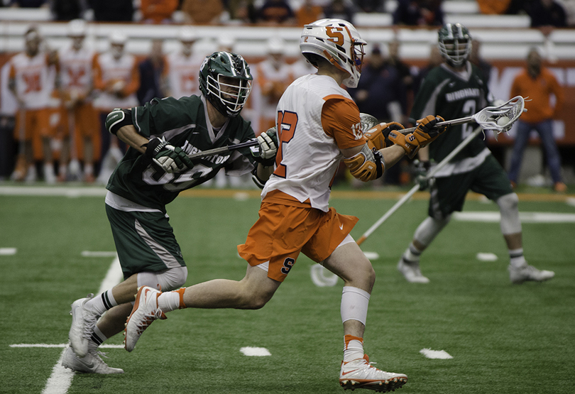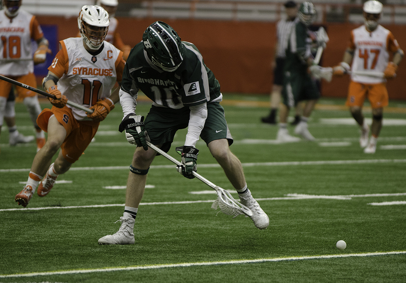The nation’s top-ranked team, Syracuse, won another one-goal game, 9-8, over Binghamton on Saturday in the Carrier Dome. It’s Syracuse’s (11-1, 4-0 Atlantic Coast) ninth straight win and the Bearcats’ (9-4, 3-2 America East) third consecutive loss. SU senior attack Jordan Evans had a team-high three goals and the Orange defense buckled down late to preserve the win. Syracuse plays next in Durham, North Carolina, in an attempt to win its third straight ACC tournament.