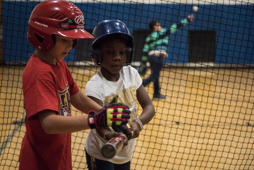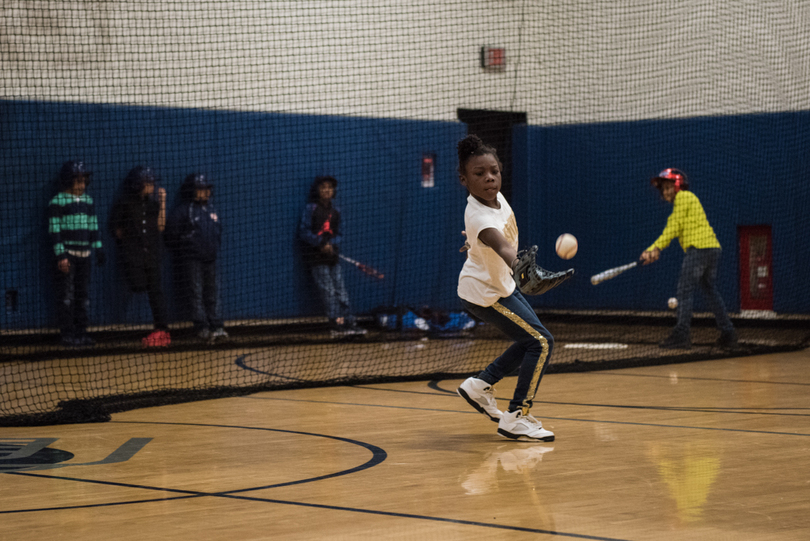 A line of boys and girls stood outside of the batting cage, clapping their hands to the beat of every ding that echoed in the gym at the Boys & Girls Club of Syracuse. Each time ball met bat, they chanted and jumped in jubilation. For many, moments such as these provide security.